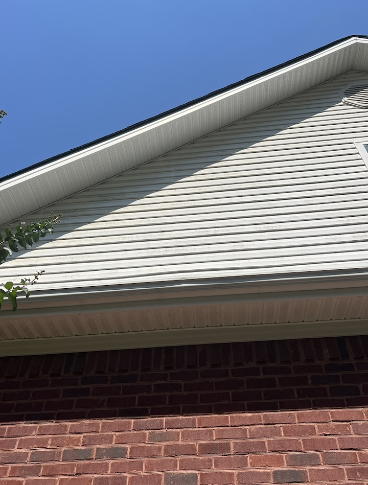 Beautiful House washing done in Macon. The house was a mix of brick and vinyl. Vinyl stands out the most when dirty and brick is not quite as bad, but brick can have bad spots here and there so it’s best to knock it all out at once. Brick as well as the grout holding it is very porous and holds mold spores within the pours so therefore we Softwash this to keep from damaging the grout, but also to get rid of the problem at the source and not just the top layer. This will keep the mold away for much longer because mold multiplies on top of it self quicker. During the walkthrough we are always sure to ask if there is any stain on the doors, windows, shutters, etc.. because these can be damaged while softwashing. We covered up the door because it was stained and for to work. House turned out beautiful with its new shine!
