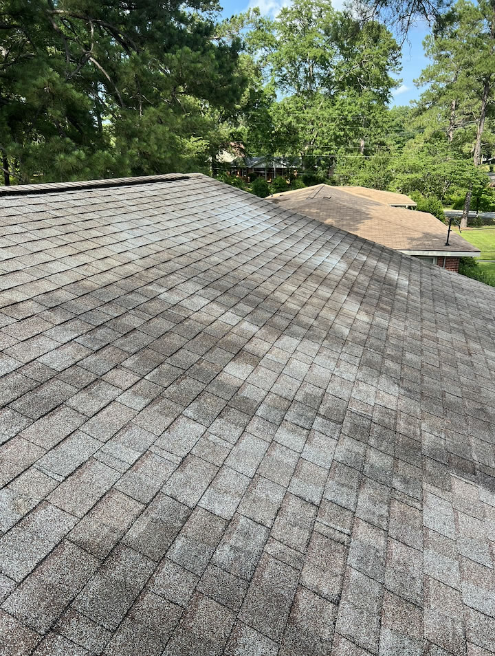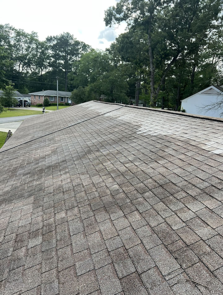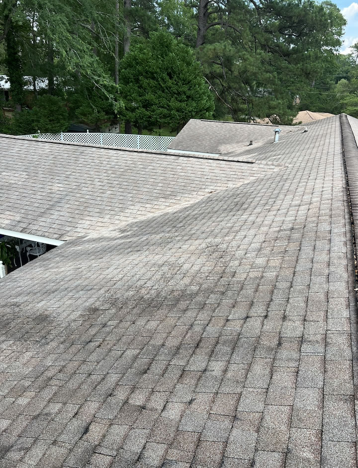 Great roof turnout on this Roof cleaning in Milledgeville Georgia. The customer was concerned about her roof so she called a roofing company to come look at it and asses the damage. It turns out that there was no damage to the actual roof itself or its integrity. Thankfully the roofing company (Roof South LLC) gave her my number and she gave me a call to come clean it. I say thankfully because it was not the roofers job to worry about the roof after the fact, but cared about the customer and knew that the service that I provided would save the longevity of the roof. Customer was thrilled which means we were thrilled and she has a clean roof free from algae deteriorating her shingles. We call that a win!